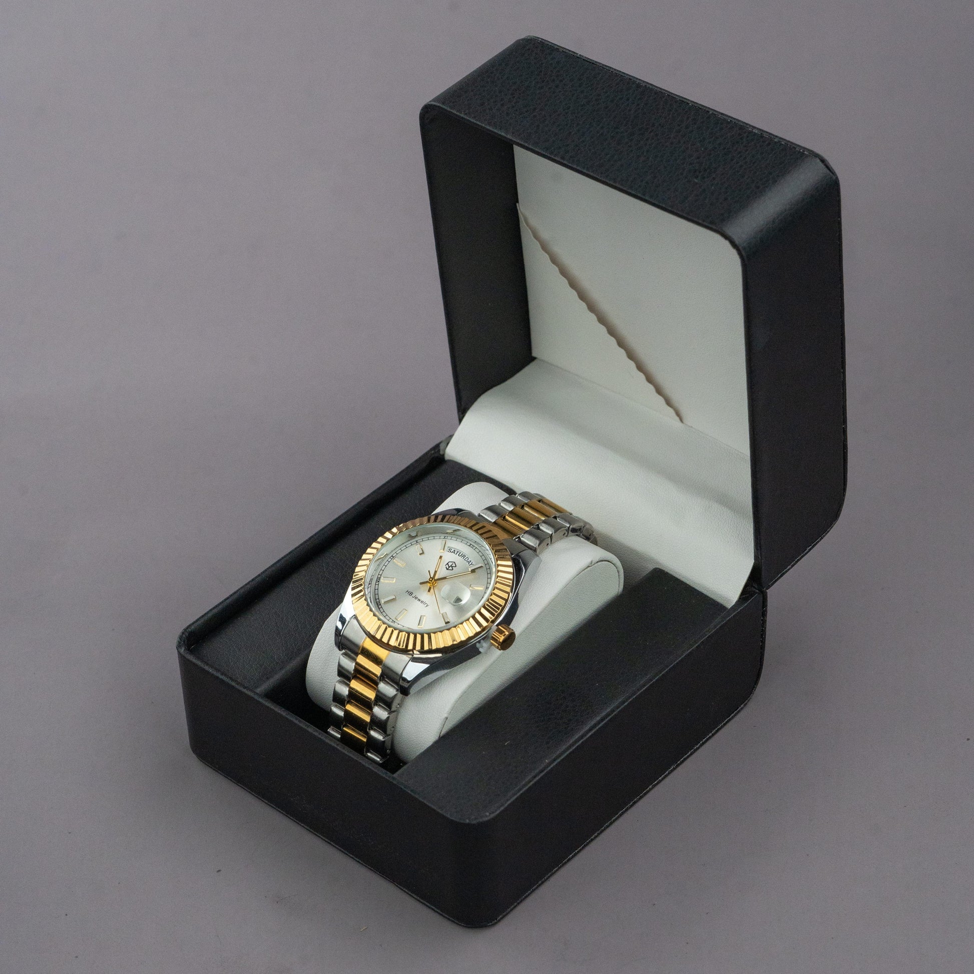 Elevate your style with the HB Jewelry CORVANE Two-Tone Men's Watch with Date and Day Display, Quartz Movement, Thick Strap. This exquisite timepiece boasts a sophisticated two-tone design that effortlessly complements any outfit. Crafted to perfection with the finest materials, this watch combines elegance and functionality, making it a must-have accessory for any fashion-forward man. Make a statement of sophistication with the HB Jewelry CORVANE Two-Tone Men's Watch with Date and Day Display, Quartz Movement, Thick Strap. Whether for yourself or as a gift for someone special, this watch is the perfect accessory to enhance your style. Don’t wait – add this stunning timepiece to your collection today and experience the elegance and reliability of HB Jewelry