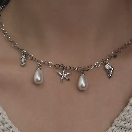 HB Jewelry EL NIDO Silver Synthetic Pearl Summer Pendant Chain Necklace For Women