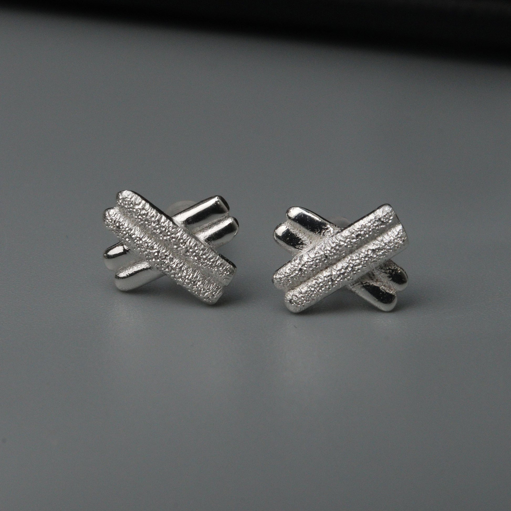 KHARI S925 Silver Double X Stud Earrings Women's